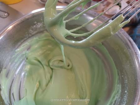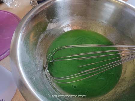 2. Combine oil, coconut milk, and pandan juice. You will notice they are hard to combine because oil and water just don’t mix