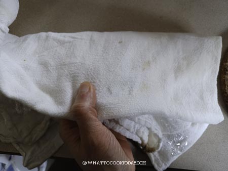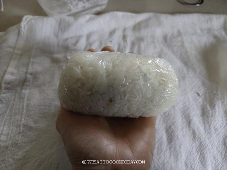 - Bring the two sides of the towel towards the center. So the rice will cover the filling