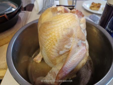 It is basically a brine made with light and dark soy sauce, instead of salt, and water. It’s a salty solution like brine would be. I like using soy sauce because it has that hint of umami. The soy sauce brine is perfect for turkey, duck, pork chops, or other meat too.