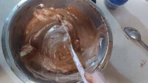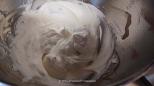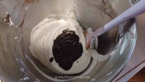 - Then add the rest and mix until everything is just combined and form a medium soft peak. It may seem soft now but the frosting will set in the fridge later because the chocolate will help it set firm