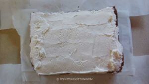 - Remove the cake from the refrigerator. Starting from the top, spread the frosting evenly on top and then start to frost the four sides using an offset spatula to smooth them. I use up all the frosting. The top layer should be pretty thick. You may think that it's a lot of frosting, but trust me, it's not!