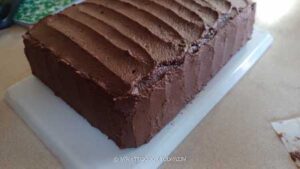 - I use my offset spatula to create some patterns on top of the cake. If you want to decroate with mini chocolate chips, do it here. I forgot and did it later after the frosting has set, but oh well, it still turned out ok.