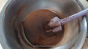 - Combine the instant coffee with warm water to let it dissolve. Place the chocolate in a heat-proof bowl and set on top of a double boiler over medium low heat. Add the coffee and butter and stir with a rubber spatula until the chocolate starts to melt. When there are still a few chocolate remains, remove from the heat and keep stirring until all the chocolate has melted