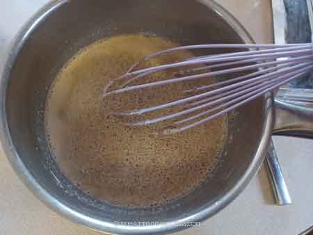 1. Combine all ingredients for milk pudding in a saucepan. Use a whisk to combine until there are no lumps. Strain the batter if necessary. If you use instant coffee mix, it won’t dissolve yet, don’t worry about it. It will dissolve when we cook it later