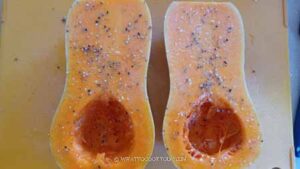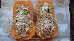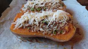 Let the stuffed squash cool completely, then place it in an airtight container. I have also wrapped it in foil and kept it in the fridge. I don’t recommend freezing, especially the butternut squash, as the texture changes after.
