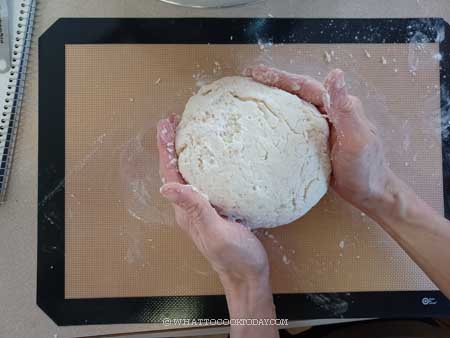 6. Then flip over and use your hands to cup and twist the dough to form a round dough, roughly! Try not to work the dough too much. The less you handle it, the better. It’s a very rough-looking dough and that’s the way it is
