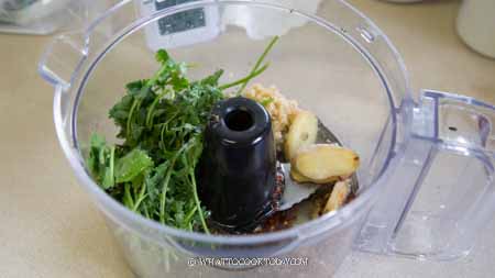 3. Transfer the tea leaves to a food processor, and add the spices, herbs, seasonings, and oil.