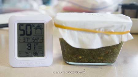 - Transfer the mixture into the sterilized jar using clean utensils. I cover it with a clean coffee filter secure with a rubber band and let it sit at a warm place around 82-90 F to ferment for 7-10 days. I did 7 days