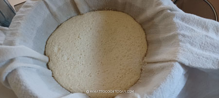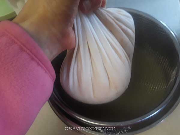 12. When it’s cold enough to handle, you can use your hands to squeeze the rest of the soymilk out from the soybean pulps inside the cheesecloth. Alternatively, you can also let the soymilk strained inside the fridge until the next day