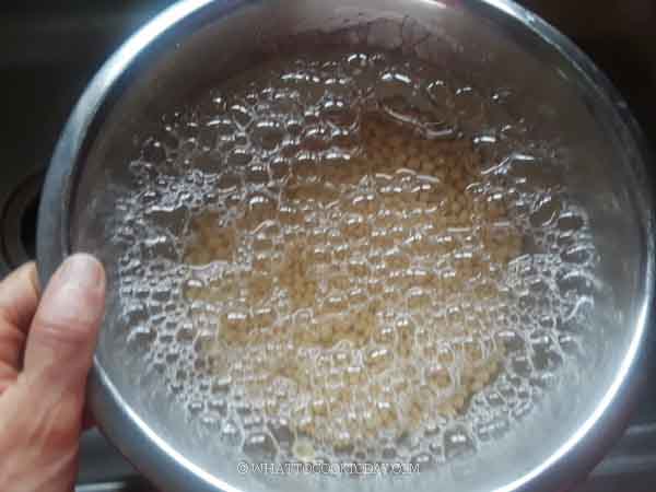 7. Pour this into the inner pot. So we have total of 5 cups of water with the beans
