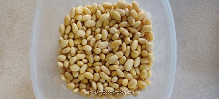 2. Put the rinsed beans in a large pot and pour enough water, about 2 inches above the beans and soak them for at least 4 hours or best overnight for a creamier taste