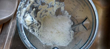 - Drain off the soaking water. I didn't rub off the skin. You can if you want. Some people prefer the taste without the skin, but I didn't notice much difference. Put this into a blender with 2 cups of water. Blend the mixture on high speed for about 10 seconds. I use Vitamix blender