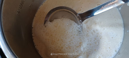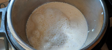 8. I notice that if I pressure cook this mixture right away, I’ll get a “burn” alert from IP because some of the starches get scorched at the bottom of the pot and trigger the burn alert. Turn the “saute” mode first and keep stirring and skim off some foams that rises.