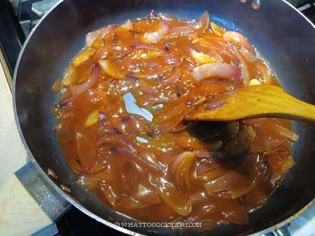 - Add the sauce ingredients in and make sure to use your spatula to scrape the bits that stick to the bottom and side of the skillet. Those are good stuff that gives extra flavor. Increase the heat to medium-high to let the sauce comes to a simmer