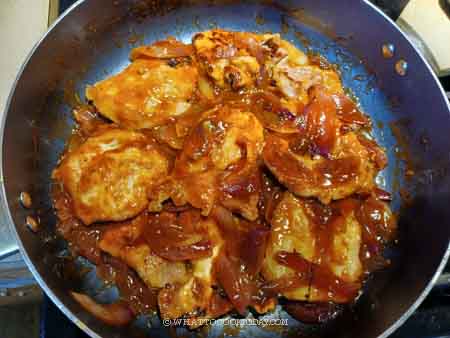 - Once the sauce has come to a simmer. Have a taste and adjust to your preference. Like I've mentioned before that you can always adjust the amount of ingredients if you want it sourer, sweeter, more savory, etc. The amount I give is just a baseline. Customize it until you are happy with the taste. Add the seared pork chops back in and let them cook for about 5 minutes. The sauce will reduce slightly