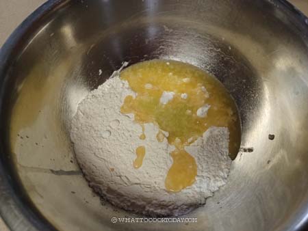 - Combine the flour and sugar. Add the melted butter and egg, and mix with spatula then use your hand to combine into a soft dough. If it's a bit dry, you can add 1/2 to 1 teaspoon of milk. Roll into a log and wrap it in a cling wrap and refrigerate for 30 minutes