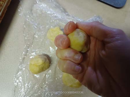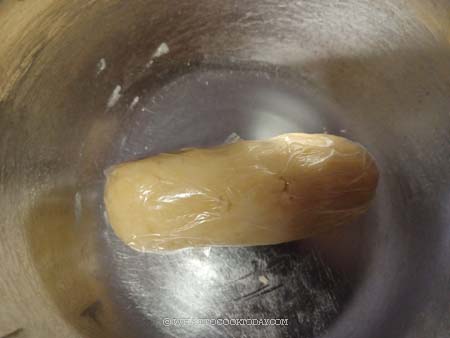 2. Mix with spatula then use your hand to combine into a soft dough. If it’s a bit dry, you can add 1/2 to 1 teaspoon of milk. Roll into a log and wrap it in a cling wrap and refrigerate for 30 minutes