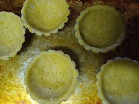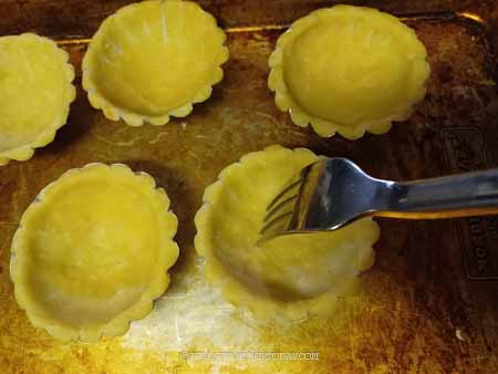 5. Use the tines of the fork and poke some holes at the bottom of the tart shells so they won’t swell up during baking