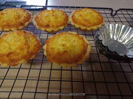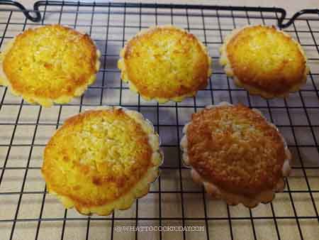 - Preheat the oven to 425 F (220 C) for conventional oven, 400 F (200 C) for convection oven. Position the oven rack, 4th rack from the top. Remove the tart shells from the fridge and scoop the coconut mixture onto the tart shells. Portion out the filling evenly among the 10 tart shells