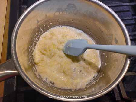 - Combine milk, sugar, salt, and butter in a pan over medium-low heat. Heat just until butter is melted. Add the desiccated coconut and stir to combine. Set aside to let it cool down for 10 minutes