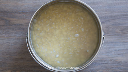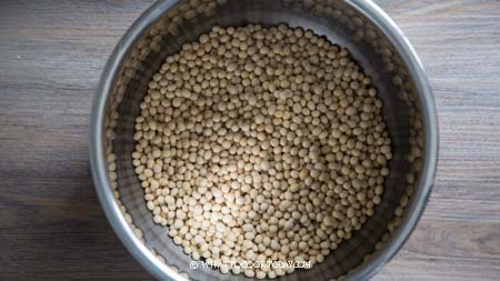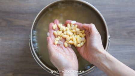 Place 2 cups of soybeans in a large pot. Pour cold water to cover the beans. Let it sit for at least 10 hours or up to 24 hours