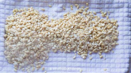 - Drain off the water and fill with more fresh water and use your two hands to rub the soybeans as if you are washing your hands. This will rub off the skin off the soy beans. The skin will rise to the top of the water and scoop those skins away and pour off the water and fill up with fresh water and rub again. Do this for about 3-4 times, or until you take off most of the skin. You may not be able to take off all the skin, but take off as much as you can, but there's no need to be obsessed about it