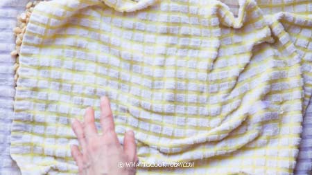 - Spread two to three dry clean absorbent cloth on the kitchen counter or wherever with enough space. Spread the cooked beans on the cloth and use another dry towel to gently rub the beans to dry it. The beans need to be dry to touch. You can also use a hair dryer on low heat to blow dry it. The temperature of the beans should be about 90-95 degrees.