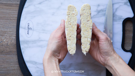 There is an instruction that comes with the tempeh starter that I purchased, but I modified the instruction a little bit. I don’t have any special equipment, such as an incubator to culture the tempeh. I only have an oven to culture the tempeh. Now I have an Instant Pot too, I love the fact that I can use that to cook the soybeans in just 15 minutes and I can use it as an incubator to culture the tempeh