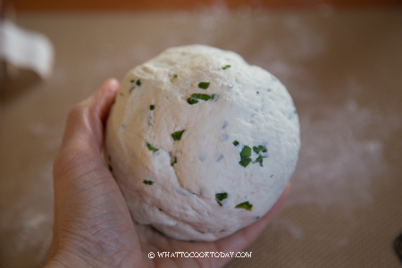 - Place the flour combination (either option 1 or 2), instant yeast, sugar, sesame oil, chopped green onion in a mixing bowl. If you are using a stand mixer, use a dough hook attachment. Gradually add in milk or water. You may need more. Add more teaspoon by teaspoon until the dough comes together and continue to knead for 10-12 minutes until the dough is very smooth and stretchy