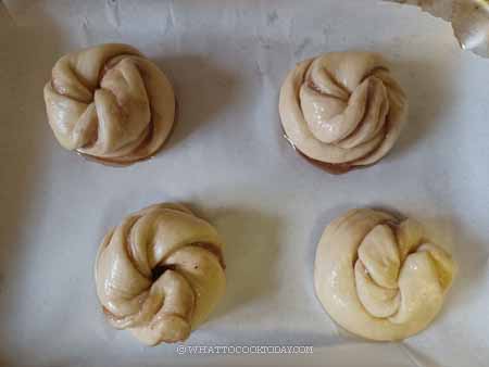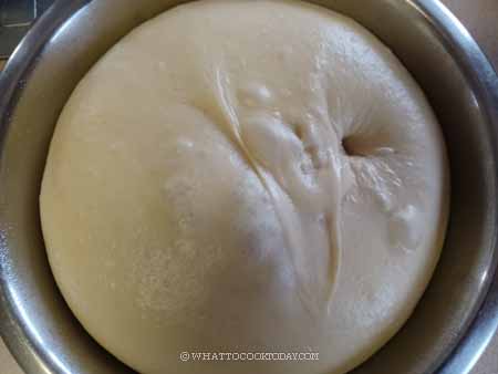 15. Cover the doughs and put in a warm place. This may take 40 minutes to 1 hour or longer for it to be puffy and almost double in size. For sourdough version, allow about 2-3 hours for the dough to be puffy. Preheat the oven to 375 F (190 C) for a conventional oven, 15 minutes before the end of final proofing. Lower the temperature by 20 F or 15 C if you have a convection oven