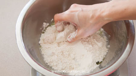 - Mix all ingredients for water dough and knead into a smooth dough. Cover and let it rest for 30 minutes while you work on the oil dough