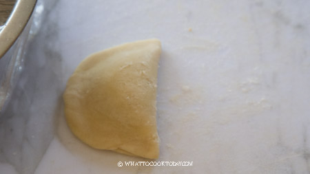 - Mix the ingredients for oil dough and knead until you can form a smooth dough. Cover and let it rest for 30 minutes