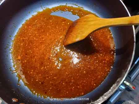 - Preheat oil in a large pan/wok. Add shallots and stir fry for about 1 minute. Add the kaffir lime leaves and fry briefly, about 10 seconds or so. Add the rest of the ingredients above and cook until the sauce thickens to a syrup consistency