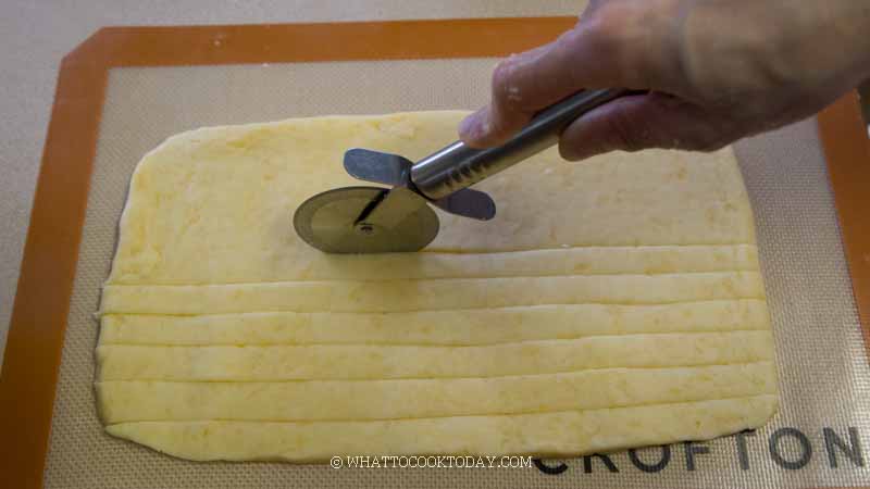 Use a knife or pizza cutter to cut the dough about 1/2-inch in width and then cut into individual about 2-3 inches long