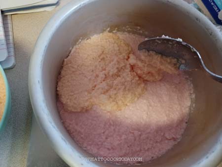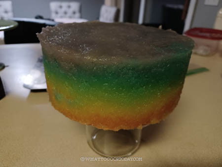 6. Continue with the third layer up to the sixth layer. I used a 6 inch round pan here, which was a bad idea because it’s too full and some of the top batter overflowed a bit during steaming. So you will need at least 7 inch round pan or 6 inch square pan to avoid batter from overflowing if you do a full recipe