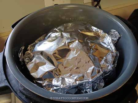 7. Put the pan in the steamer and steam over medium heat for 1 hour. The cake will appear to be very soft. Let it cools down completely in the pan. Do not attempt to cut until it has cooled down completely, which may take 3-4 hours