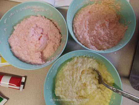 1. The recipe is extremely simple, just stir to combine everything and add the colors in