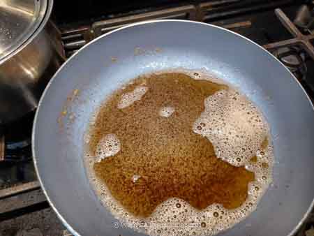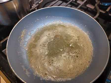 3. You will see large big bubbles and the butter is “foamy” at the beginning. Then the bubbles gets smaller