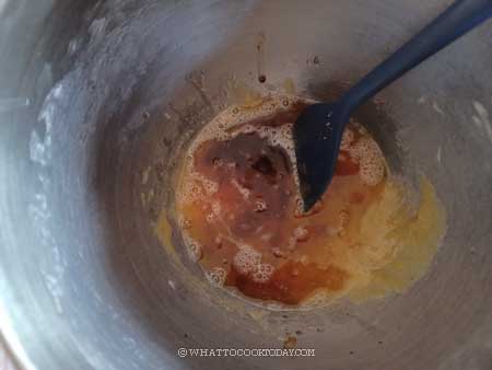 - Add both brown and white sugar to the brown butter and stir. They don't have to melt. Let the mixture cool down for about 5 minutes or to at least warm before you add the egg yolk as we don't want to cook the yolk