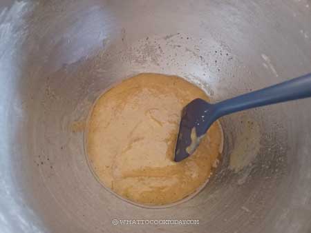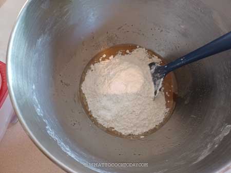 7. Sift the flour mixture you prepared earlier and use a spatula to fold to combine, but they are not entirely mixed yet, you still see some flour.