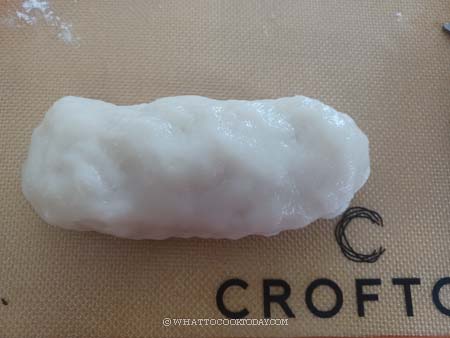 7. Transfer the dough to a lightly-oiled surface. Lightly oil your palms too and knead the dough for 2-3 minutes until it’s smooth and shiny. The kneading part is what makes the dough chewy and stretchy. So it is important to knead the dough