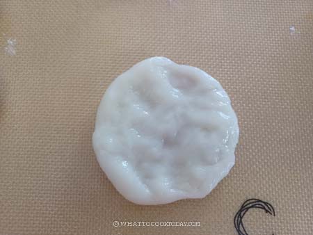 9. Work with one dough at a time. Flatten the dough with your palm to about 1/3 inch (1 cm) thick circle