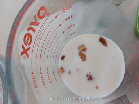 1. Warm up the milk in the microwave for a few seconds just until it’s warm, no need to be boiling hot. Cut the dried longan into small pieces.