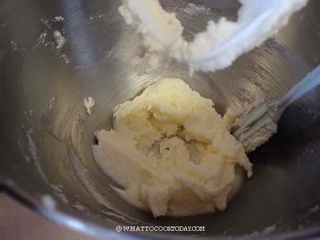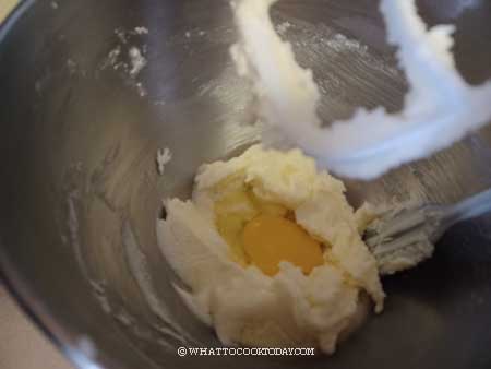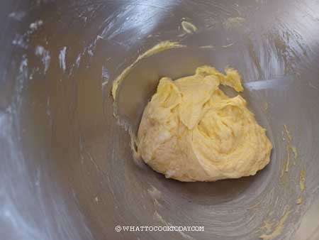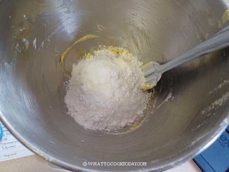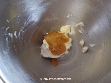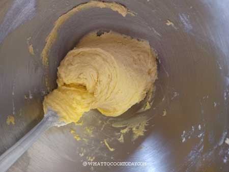 7. Add mango jam and yellow food gel if using, beat for another 20 seconds.Don’t overbeat it. We don’t need to introduce too much air for these cookies