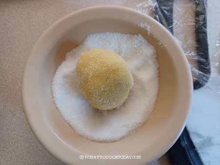 11. Roll it in a bowl filled with sugar and then roll it in another bowl filled with icing sugar. Coat it with icing sugar 2-3 times to make sure the dough is really well-covered