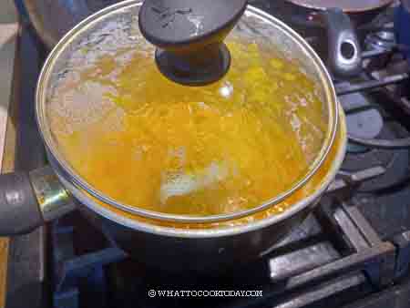2. Bring to a boil and then lower the heat to let it simmer. It may splatter initially. I cover it halfway with the lid