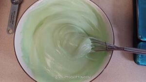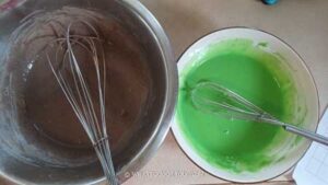 - You will need two different mixing bowls, one for the pandan batter and the other one for the glutinous rice batter