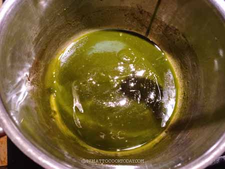 3. In a saucepan or large skillet, add honey, coconut oil, sugar, matcha powder and salt. Turn on the stove over medium-low heat and stir until the oil melts and the mixture is well combined