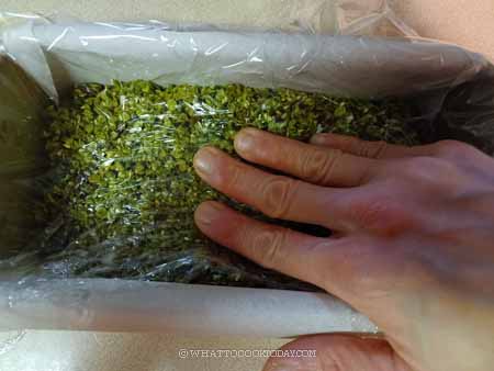 7. I cover the top with a cling wrap and use my palm to press down on the mixture really hard to make sure they are really well-packed. It is important that you REALLY press down hard on this part. This will ensure that your granola bar won’t fall apart when you cut them later.