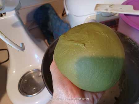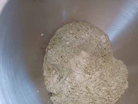 1. Combine bread flour, matcha powder, sugar, salt, and yeast in a mixing bowl of a stand mixer fitted with a dough hook attachment.